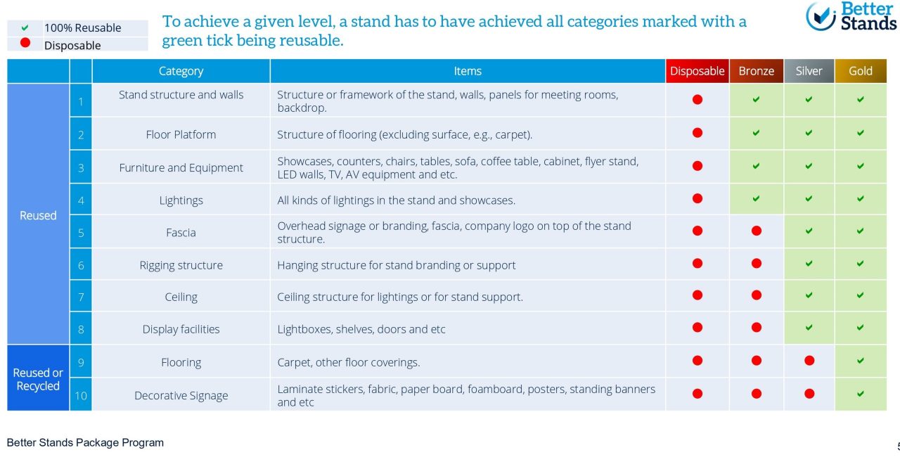 Disposable, single-use stands account for around 80% of the total waste from our event, which is why we are adopting the Better Stands programme.